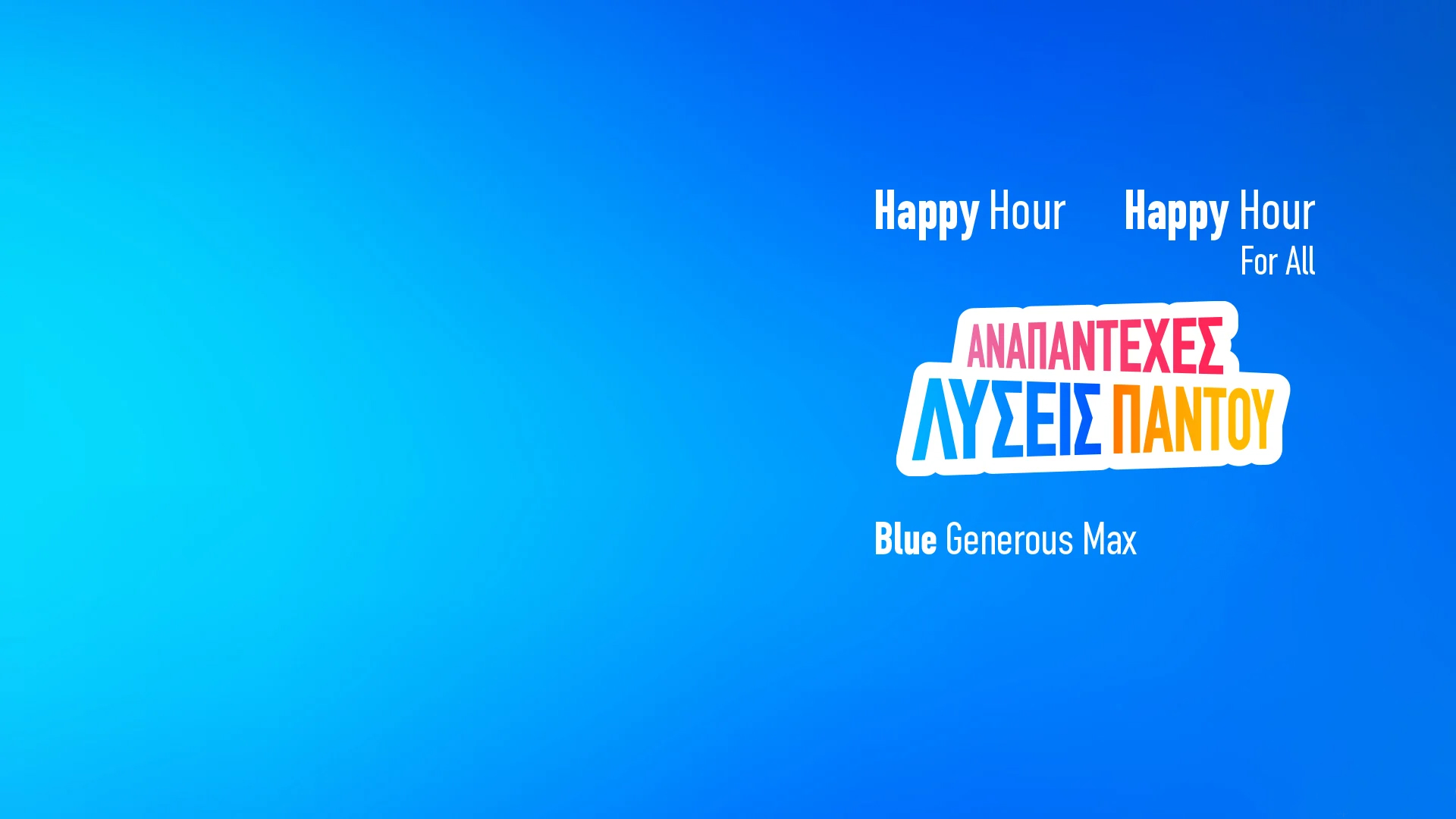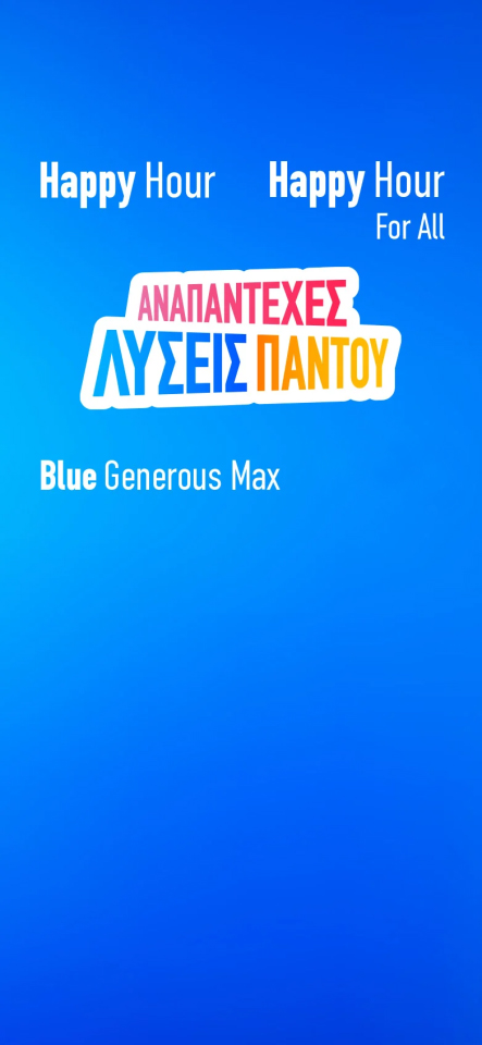 Happy Hour για να καταναλώνεις ρεύμα με μηδενική χρέωση προμήθειας ρεύματος για 3 συνεχόμενες ώρες, κάθε μέρα. Και για σένα που δεν έχεις ακόμα έξυπνο μετρητή…Happy Hour For All. Και αν είσαι τύπος των μπλε προγραμμάτων, Blue Generous Max με σταθερή & χαμηλή τιμή 0,144€/kWh για 18μήνες.
