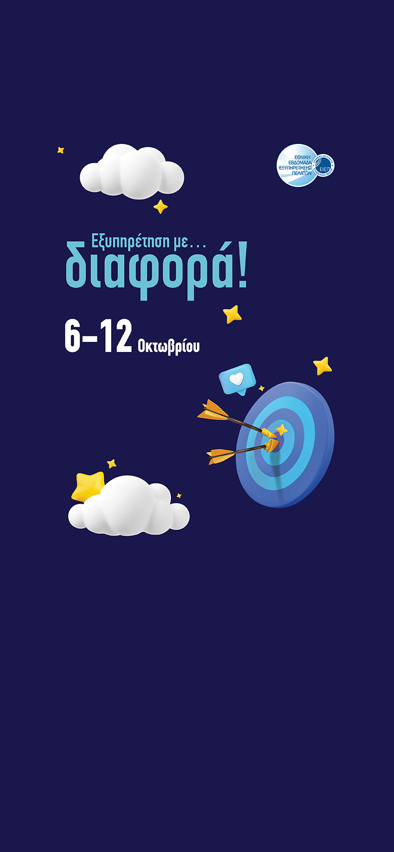 Η Εθνική Εβδομάδα, διοργανώνεται υπό την αιγίδα του ΕΙΕΠ και αποτελεί μια σημαντική πρωτοβουλία για την ανάδειξη της αξίας της Εξυπηρέτησης Πελατών, καθώς και αναγνώριση όλων εκείνων που εργάζονται με αφοσίωση και συνέπεια για την καλύτερη εξυπηρέτηση πελατών, πολιτών και καταναλωτών.
